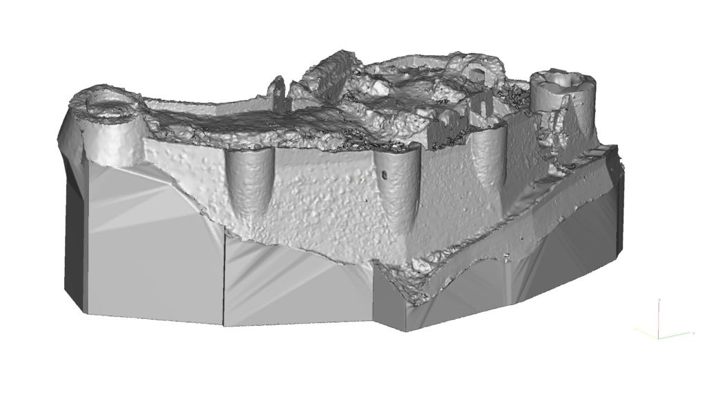 Il procedimento parte da una nuvola di punti in formato PTX , il file viene trasformato in MESH triangolata ed alleggerito in modo da poter essere facilmente gestibile. Successivamente il modello viene completato in ogni sua parte controllando sotto-squadri ed assenza di fori.