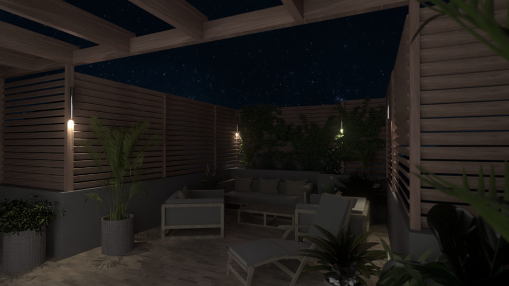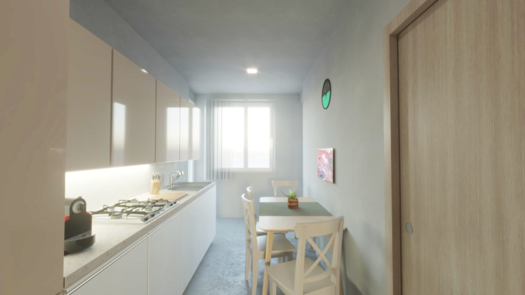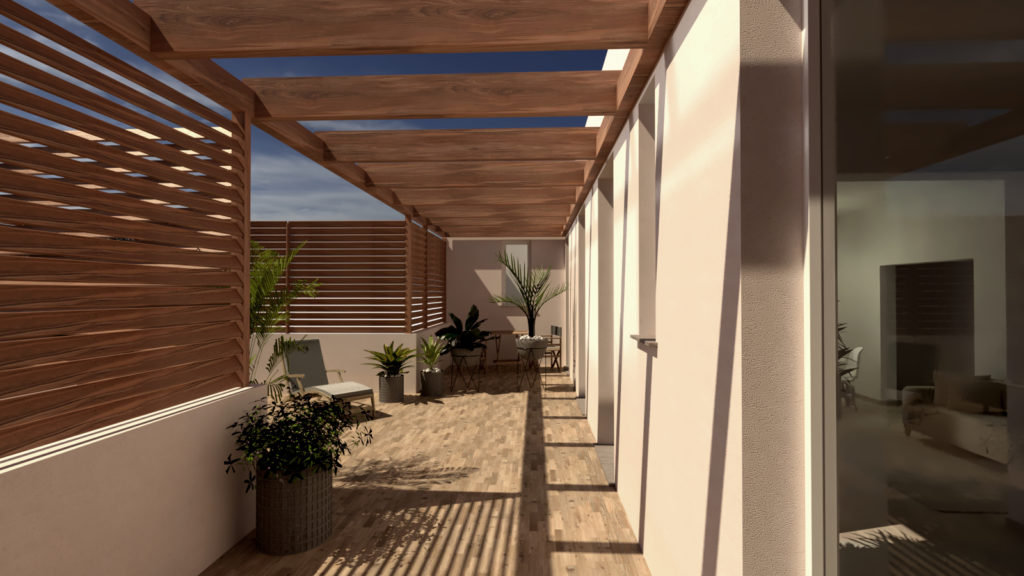 Pubblicato il 29 Marzo 2021Rendering di Progetto Progetto area giorno affacciata su piccolo spazio verde privato